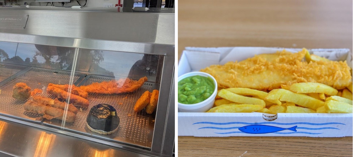 We've moved to the area from Reading, where there, chippies primarily sell fried chicken, no pork sausages and hot light chips - which is sacrilege. This is the best chippy my partner and I have ever had. Chips are ALWAYS fresh - they do not do hot light chips. They sell scraps (we haven't seen this in years!). And they they even add a bit of paper to seperate the fish and the chips, which, these small little touches show pride in what they serve. Which is so refreshing for us! So glad to have them as our local chippy.